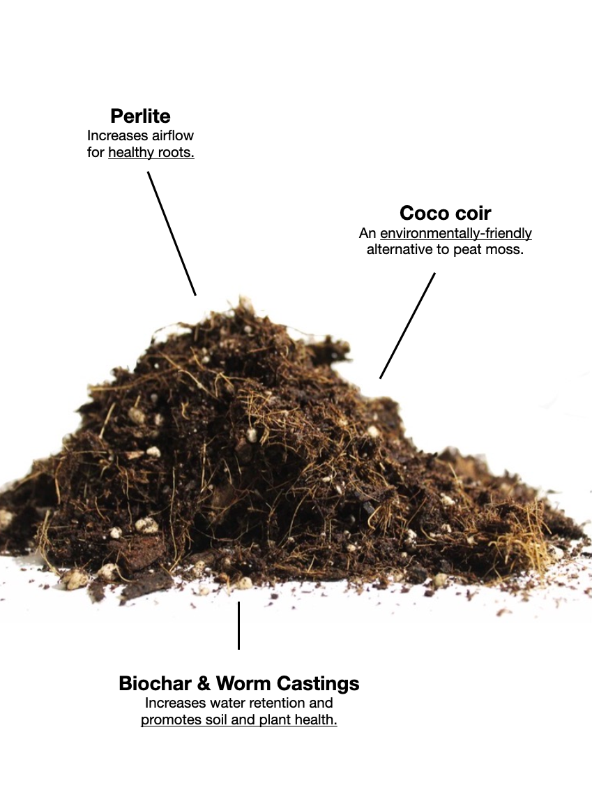 Maya soils come premixed and ready-to-use so you hardly have to get your hands dirty and they're also the more environmentally friendly choice. Instead of using the industry-standard peat moss which releases carbon into the atmosphere when harvested, it's made with coco coir, a highly renewable material and a bi-product of the coconut industry.