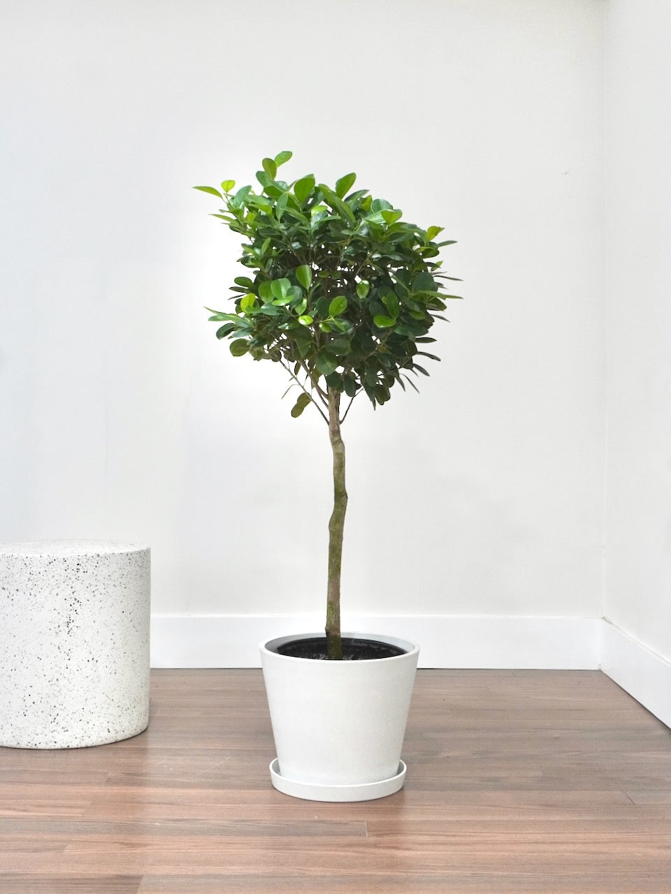 An elegant and stately plant, the Ficus Moclame is somewhat new to the houseplant scene but has gained popularity for its upright, topiary shape - great for smaller spaces where you want the impact of a big tree. Like all ficuses, this plant will grow best placed front of a very bright window and with deep, infrequent waterings.