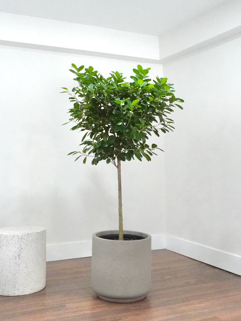 An elegant and stately plant, the Ficus Moclame is somewhat new to the houseplant scene but has gained popularity for its upright, topiary shape - great for smaller spaces where you want the impact of a big tree. Like all ficuses, this plant will grow best placed front of a very bright window and with deep, infrequent waterings.