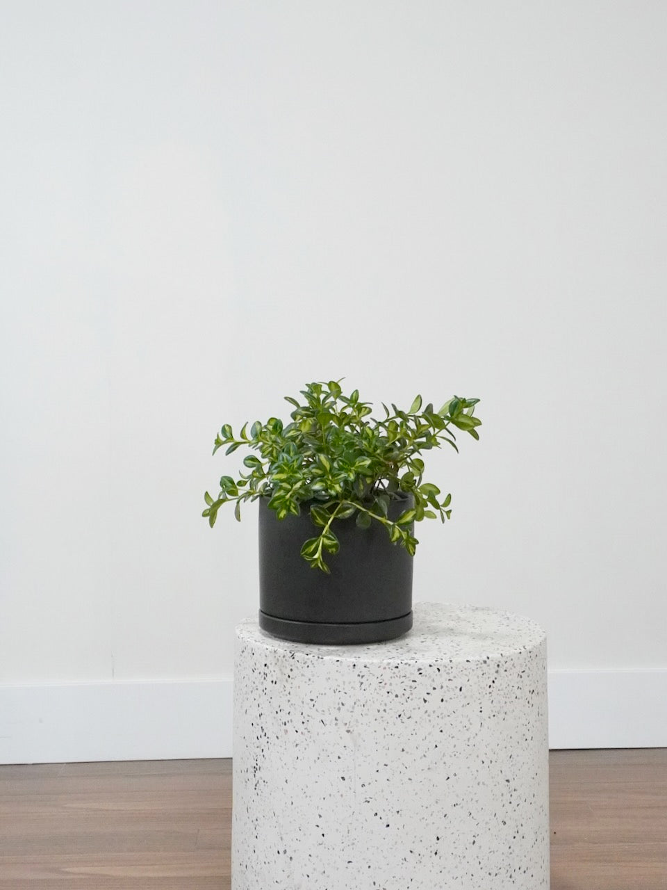 - Potted in a standard plastic nursery pot with drainage holes.
